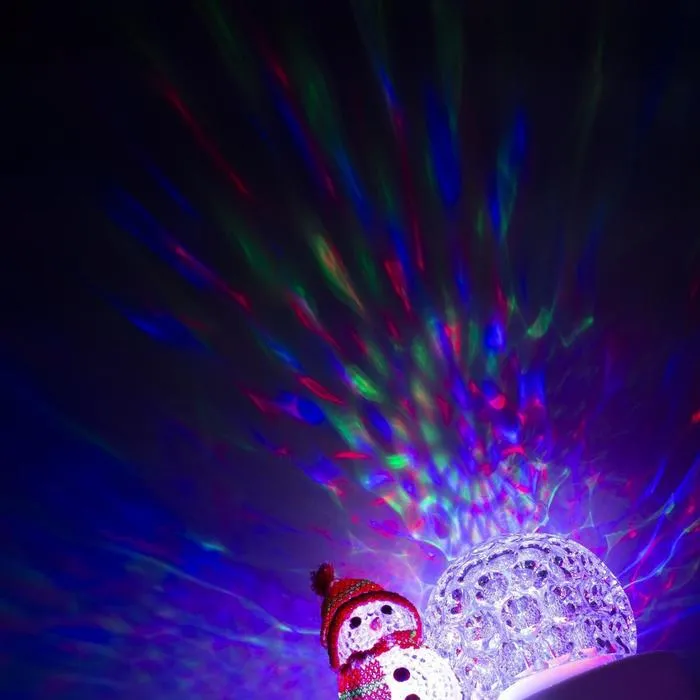 Световой прибор «Снеговичок» подойдёт в качестве новогоднего подарка ребёнку. Подключите прибор к сети, и шар закружится и создаст цветные узоры. Встроенные светодиоды не нагреваются и безопасны. После праздников игрушка не будет пылиться на полке: вы сможете использовать её как ночник круглый год.