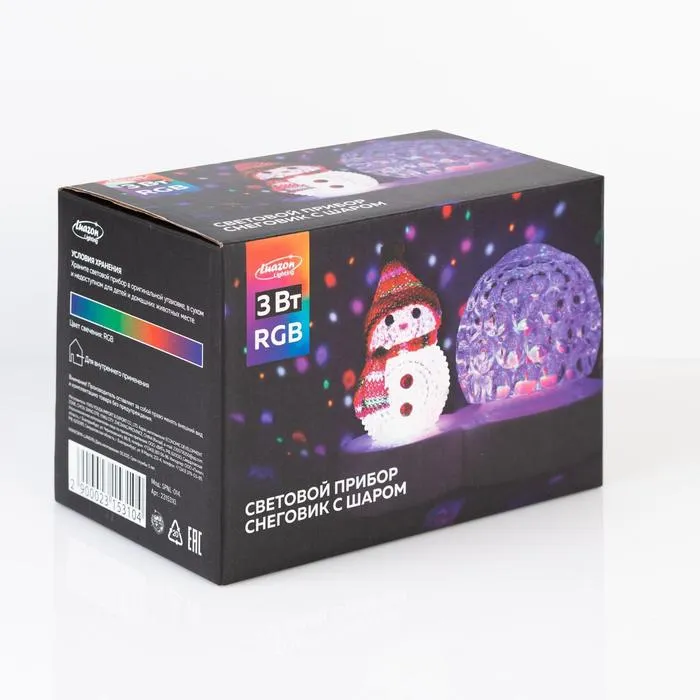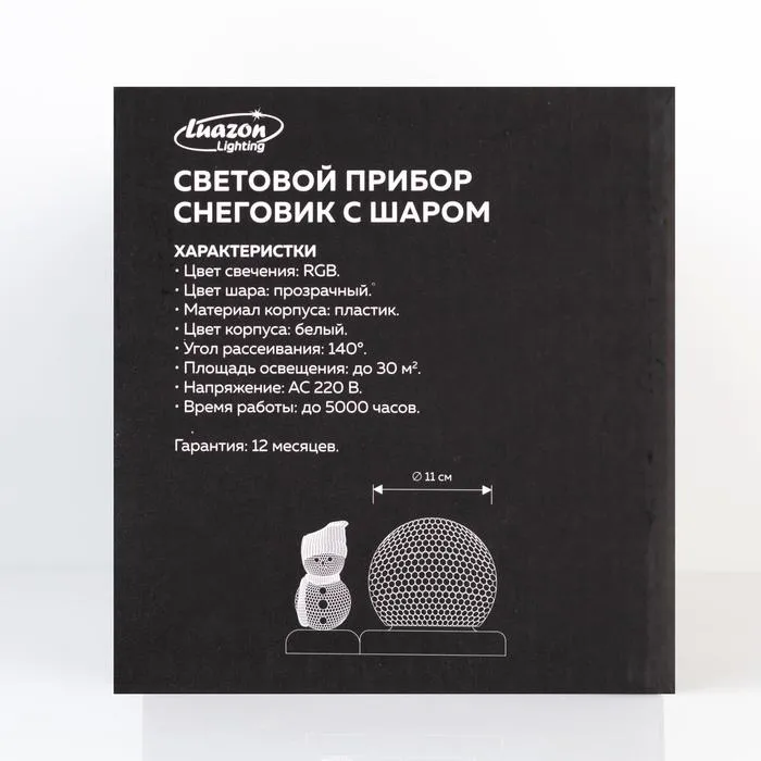 Световой прибор «Снеговик с прозрачным шаром» 9.5 см, свечение мульти, 220 В — Характеристики