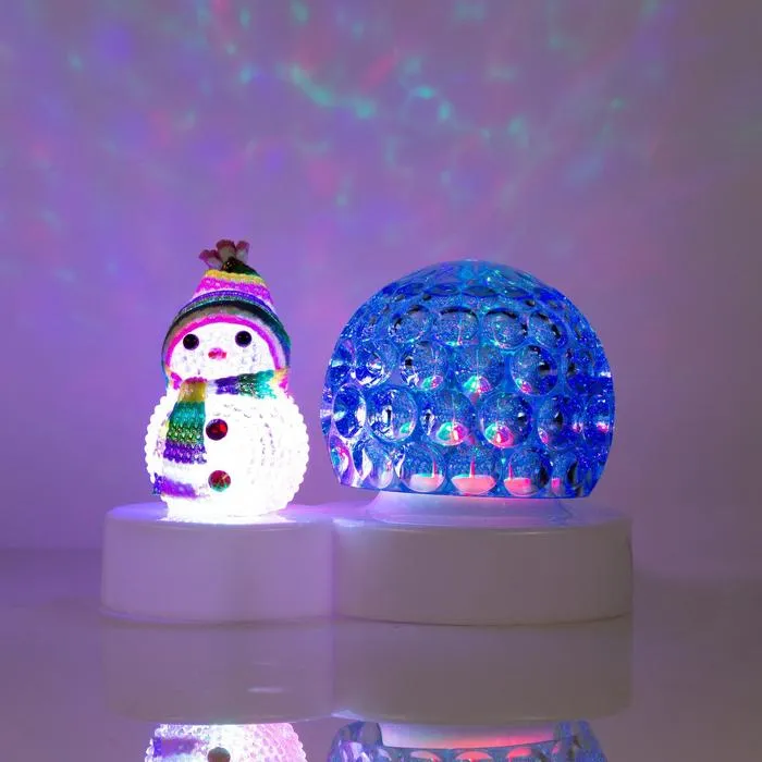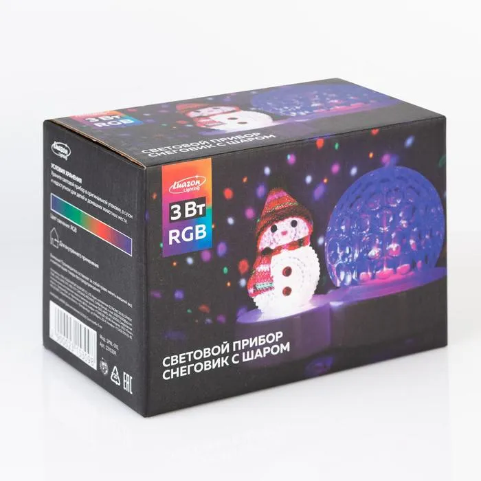 Световой прибор «Снеговичок» подойдёт в качестве новогоднего подарка ребёнку. Подключите прибор к сети, и шар закружится и создаст цветные узоры. Встроенные светодиоды не нагреваются и безопасны. После праздников игрушка не будет пылиться на полке: вы сможете использовать её как ночник круглый год.