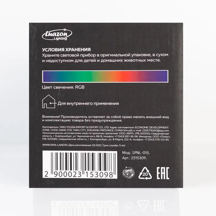 Цвет свечения: Мульти