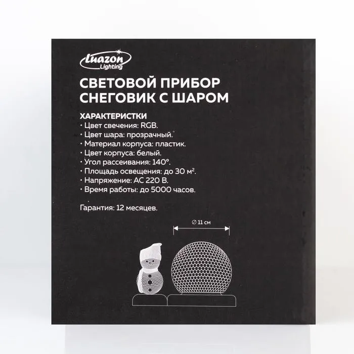 Световой прибор «Снеговик с синим шаром» 9.5 см, свечение мульти, 220 В — Характеристики