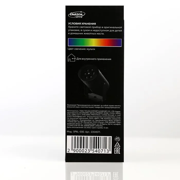 Световой прибор «Снежинки и игрушки», 2 картриджа, свечение мульти, 220 В — Характеристики