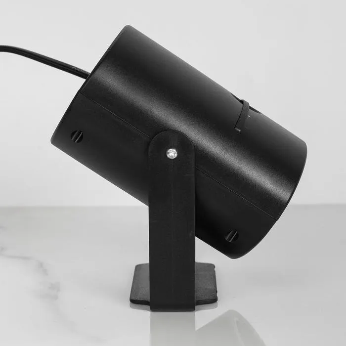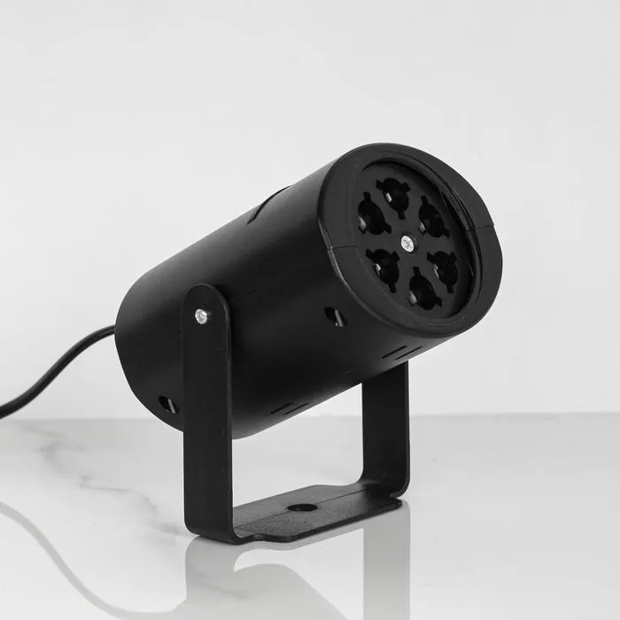 Прибор «Снежинки» создаёт световые эффекты. Лучи проходят через картридж (в комплекте 2 штуки) и отверстия на устройстве и проецируют разноцветные картинки на поверхность. Работает от сети, можно поставить на пол, стол или повесить на потолок, стену. Оснащён поворотным механизмом, чтобы направлять лучи.