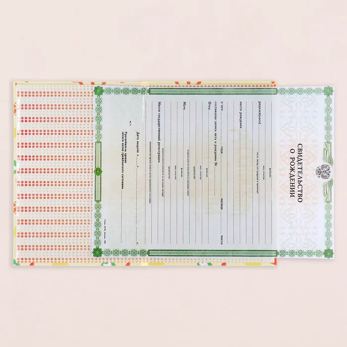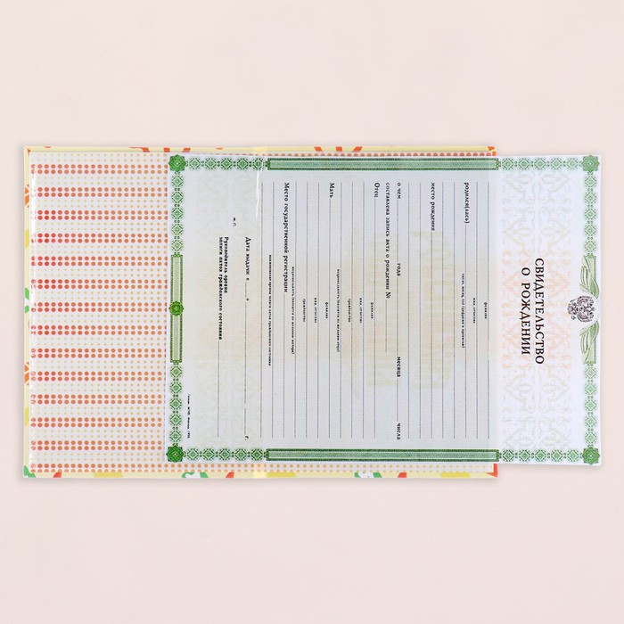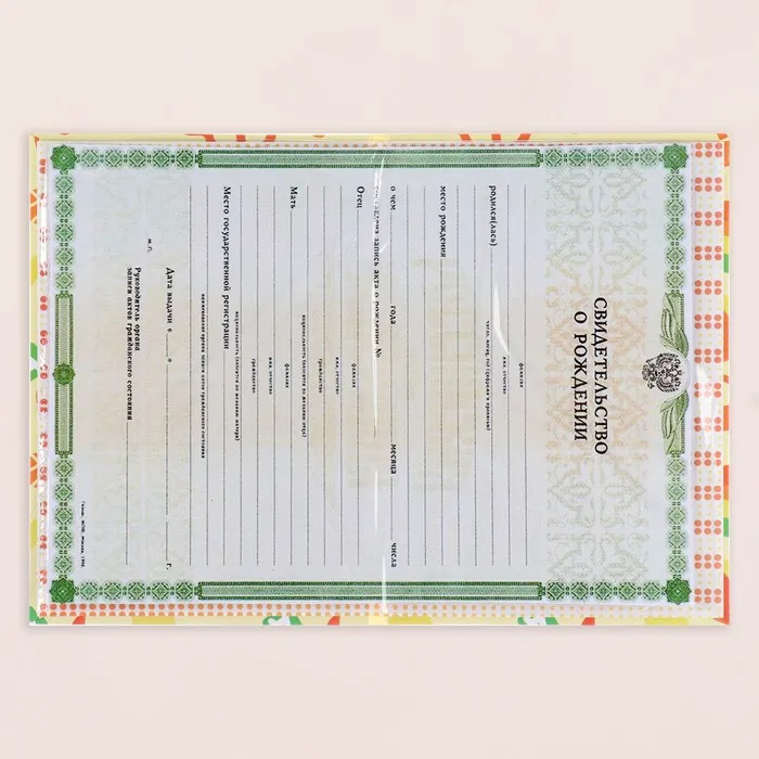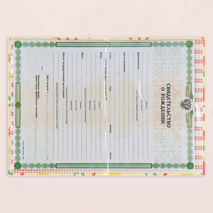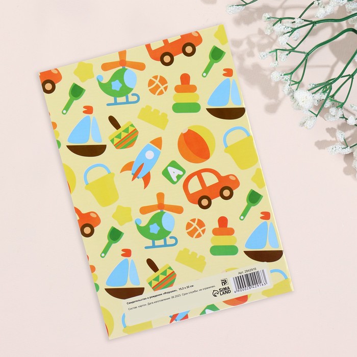 Свидетельство о рождении «Игрушки» ламинированное, А4