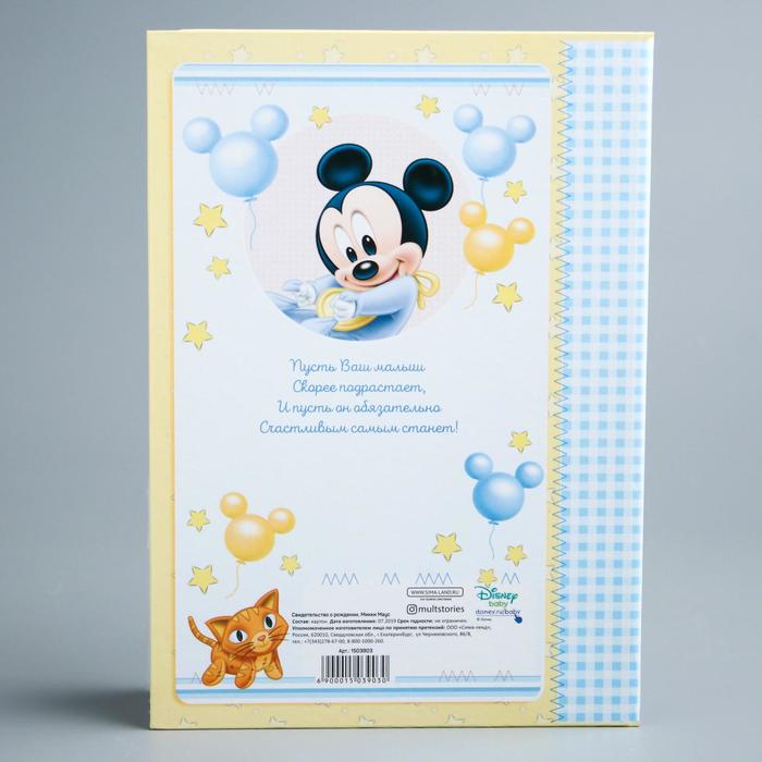 Свидетельство о рождении «Микки малыш», Микки Маус, размер файла 14.2×20.5 см Disney (новый формат свидетельства)