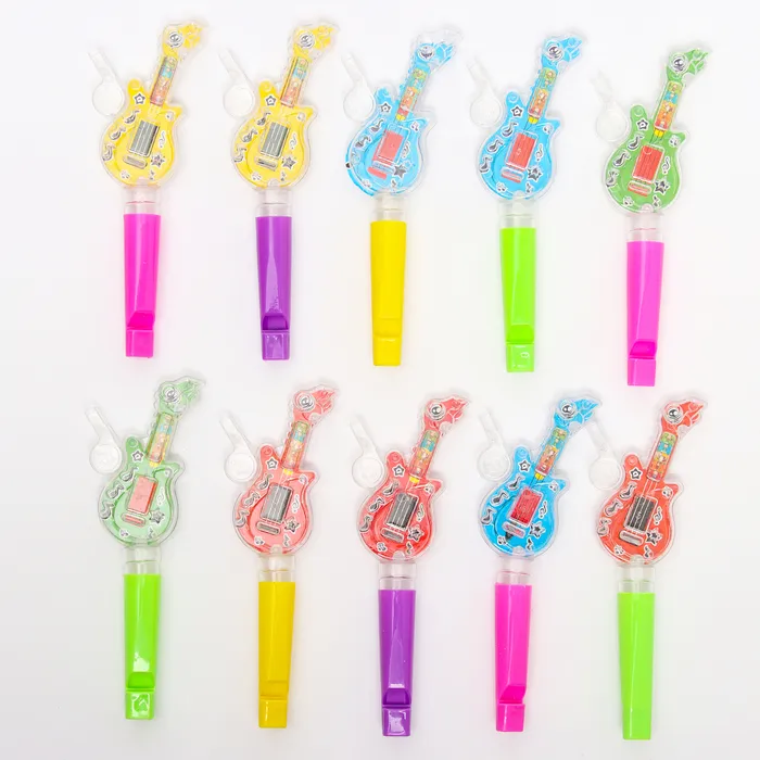 Свисток «Гитара» — это яркий и весёлый аксессуар для создания праздничного настроения. Устройство оснащено простым механизмом, который позволяет издавать громкий свист, что делает его идеальным дополнением для игр и детских праздников.