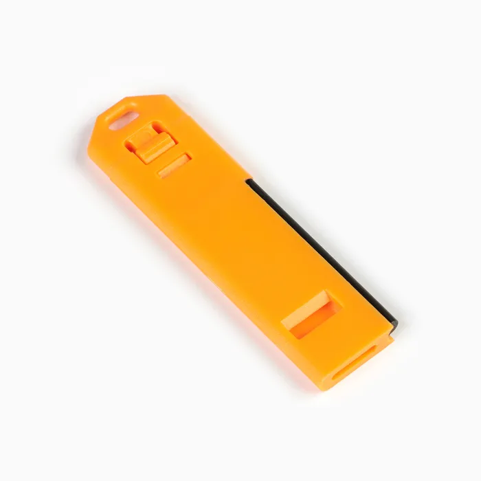 Свисток для выживания высокочастотный, до 100 дБ, 8 см, с огнивом, пластик, оранжевый