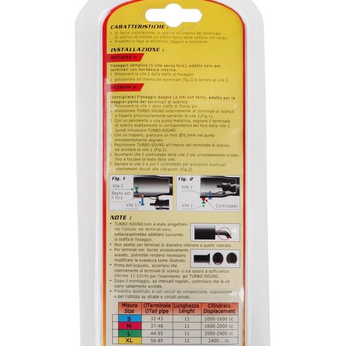 Свисток в глушитель, способный имитировать звук турбины. Монтируется в трубу глушителя, закрепляется на болт, это необходимо т.к. в глушителе создается давление способное вытолкнуть его при езде на больших оборотах. Принцип работы турбо свистка заключается в прохождении выхлопных газов под давлением через него, тем самым создавая свист-шипение точно как у турбированной машины.