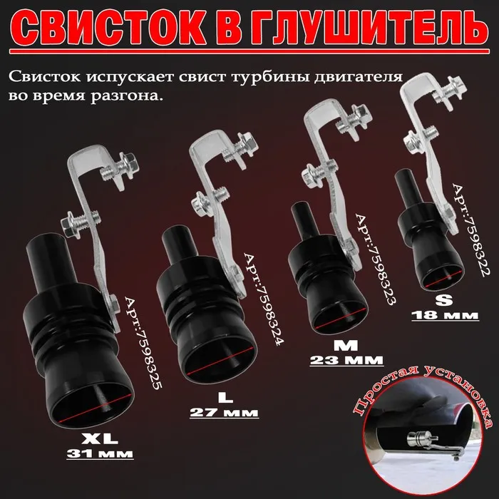 Свисток в глушителе автомобиля - это устройство, которое устанавливается на выхлопную систему и создает звук определенной частоты. Оно обычно используется для изменения звука автомобиля или для того, чтобы сделать его более спортивным. Размер S подходит для автомобилей с диаметром выхлопной трубы от 32 до 43 мм. Черный цвет свистка хорошо сочетается с большинством автомобилей.