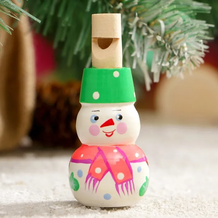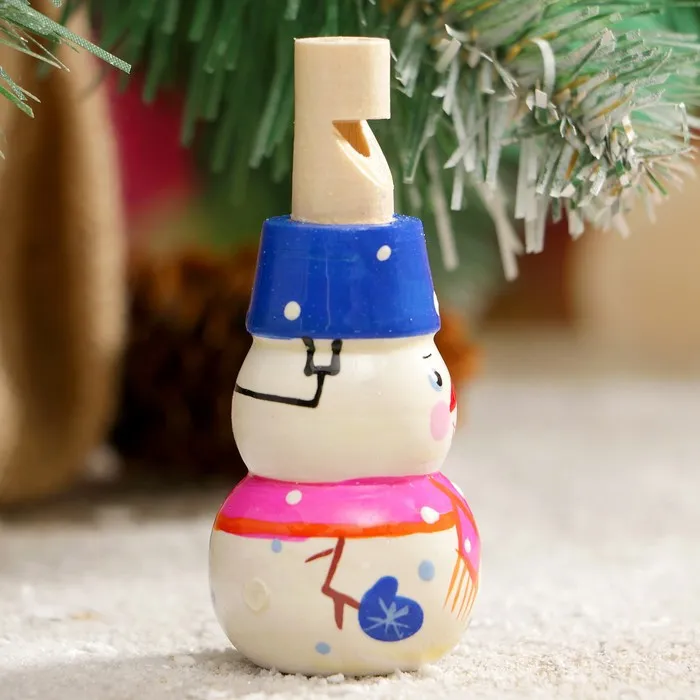 Свистулька из дерева «Снеговик», 3×7 см, ручная роспись, МИКС — Характеристики