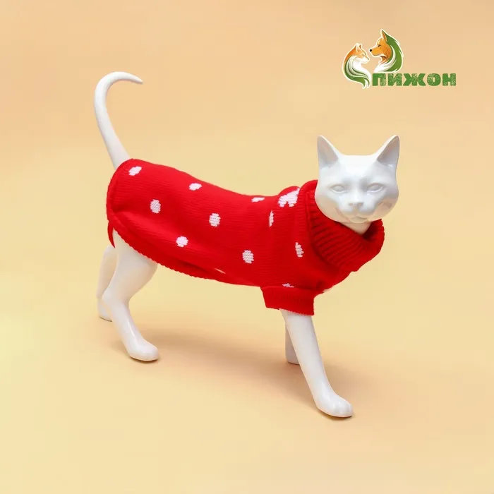 Комфорт и тепло: Свитер изготовлен из мягкой и тёплой ткани, что обеспечивает вашему животному комфорт и защиту от холода в прохладные дни. Он хорошо сохраняет тепло, не стесняя движений питомца.