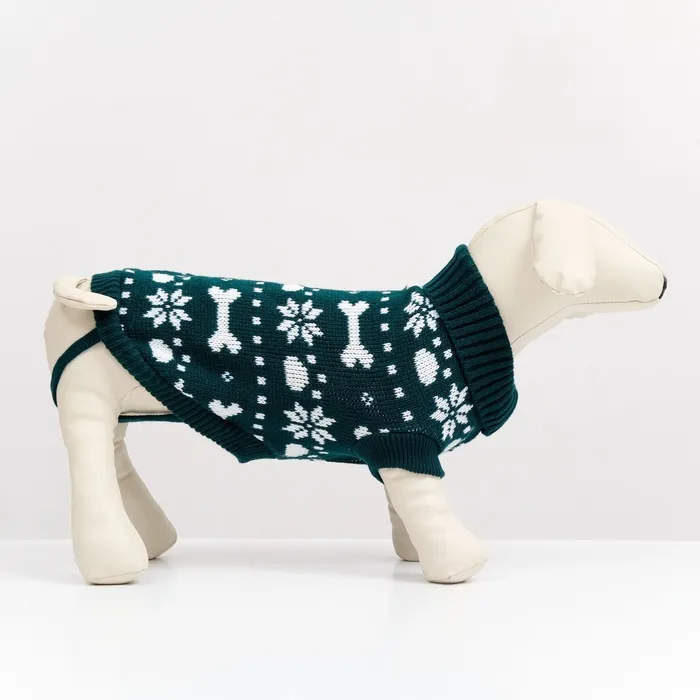 Свитер "Косточки-снежинки" для собак имеет уникальный новогодний дизайн, который придаст вашему питомцу особый вид во время праздников.
