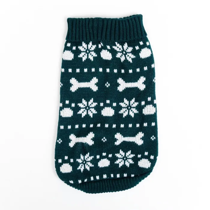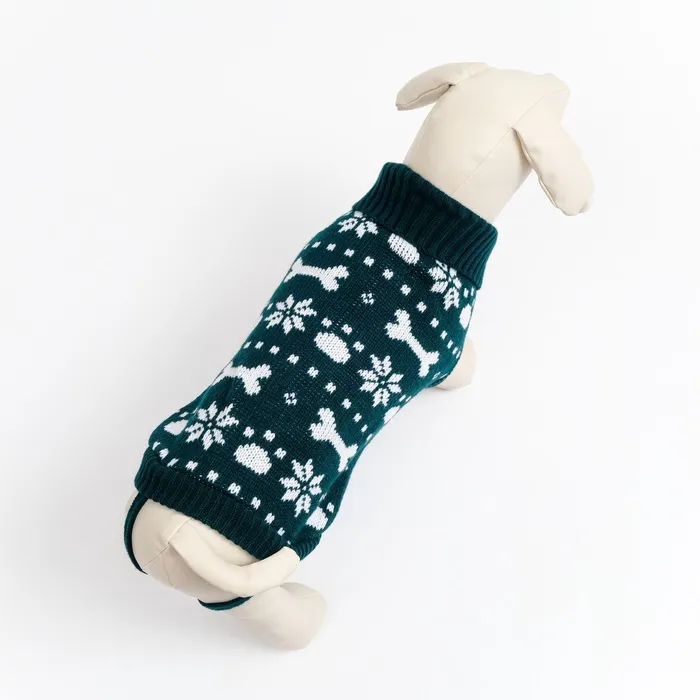 Свитер "Косточки-снежинки" для собак имеет уникальный новогодний дизайн, который придаст вашему питомцу особый вид во время праздников.