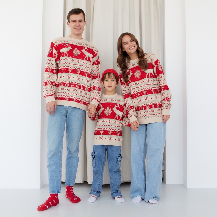 Свитер вязаный новогодний детский KAFTAN Scandinavia, размер 30 (98-104 см), красный — Характеристики