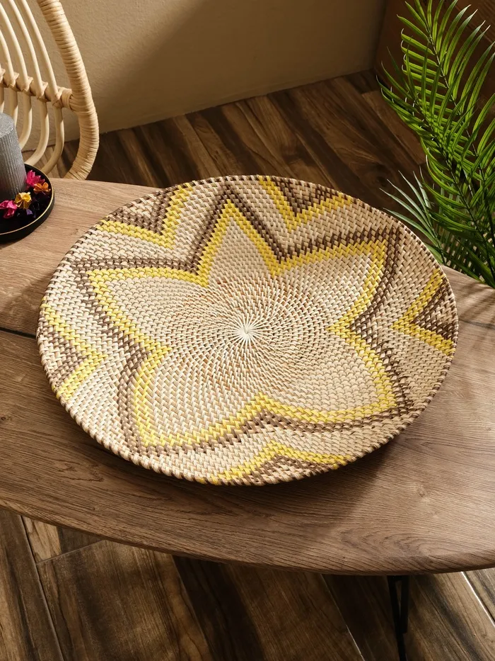 Тарелка декоративная плетёная «Цветок», 50×50×5 см, ротанг, чёрно-жёлтая