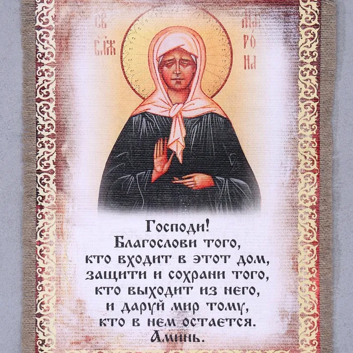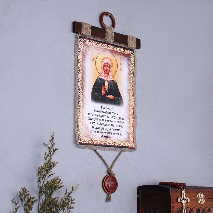 Свиток настенный «Икона с молитвой: Благословение гостей Матрона», панно