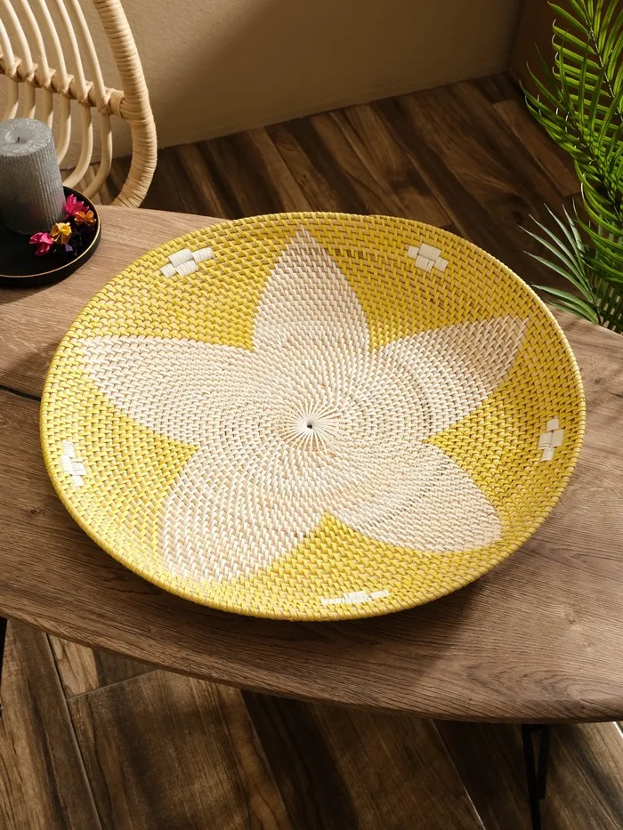 Тарелка декоративная плетёная «Цветок», 50×50×5 см, ротанг, жёлтая