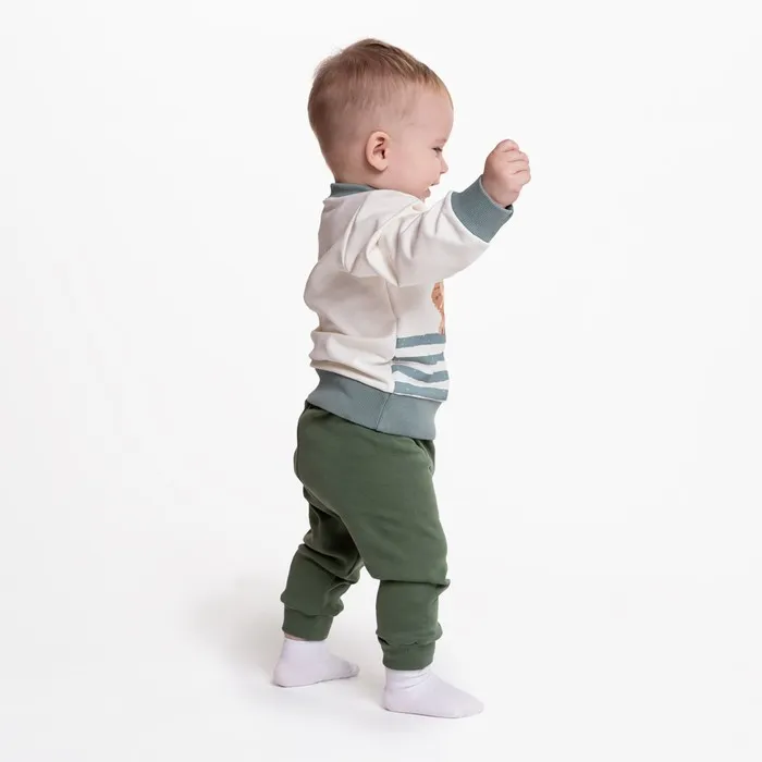 Свитшот детский, цвет молочный/зелёный, рост 98 см