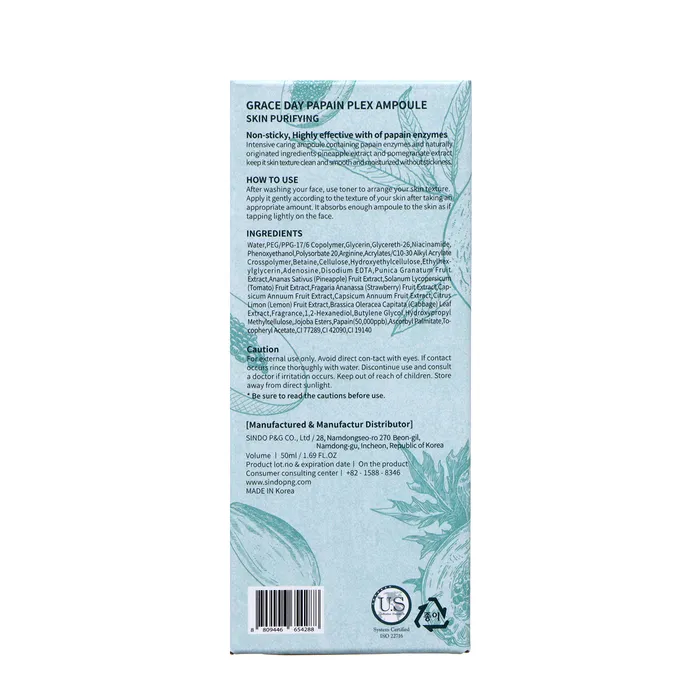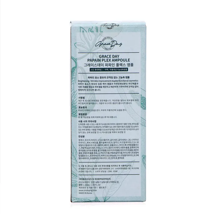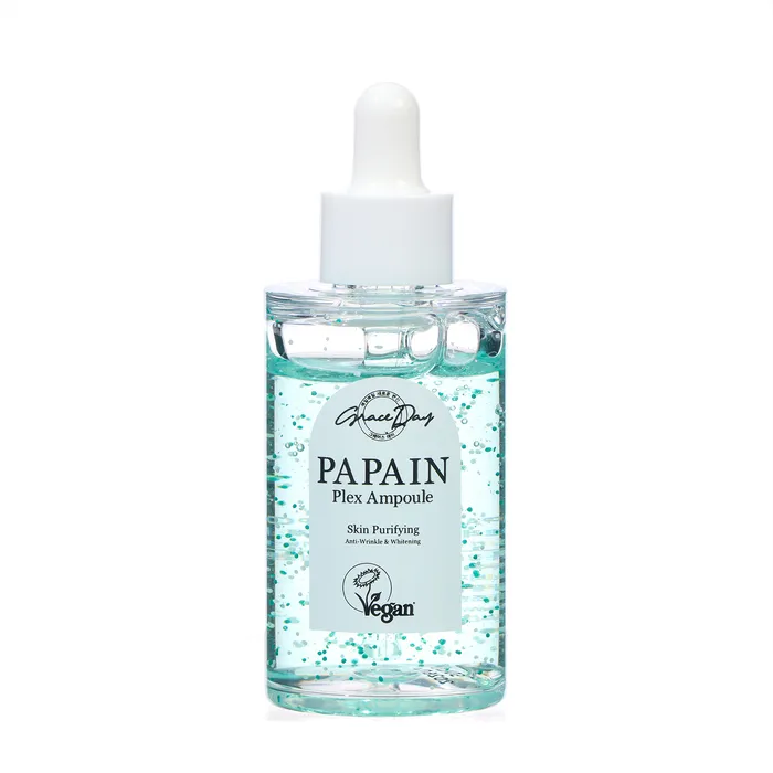 Grace Day Papain Plex Ampoule. Выравнивающая сыворотка с экстрактом папайи. Выравнивающая сыворотка обладает разглаживающим действием, уменьшает признаки усталости, повышает упругость, эластичность, способствует уменьшению морщин, питает и увлажняет кожу. Экстракт ананаса разглаживает кожу и выравнивает ее цвет. Экстракт граната восстанавливает, устраняет тусклость, усталость и поддерживает процессы обновления кожи. После применения сыворотки кожа чистая, свежая и гладкая. Сыворотка подходит для уставшей, шероховатой, проблемной кожи.