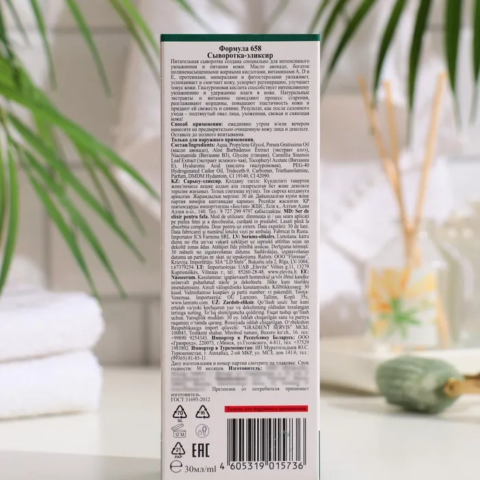 Сыворотка - эликсир для лица питательная Floresan с маслом авокадо, 30 мл — Характеристики