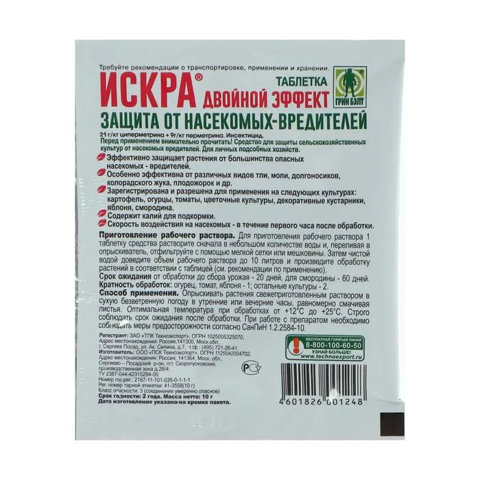 Таблетка инсектицидная Искра Двойной Эффект 10 г — Характеристики