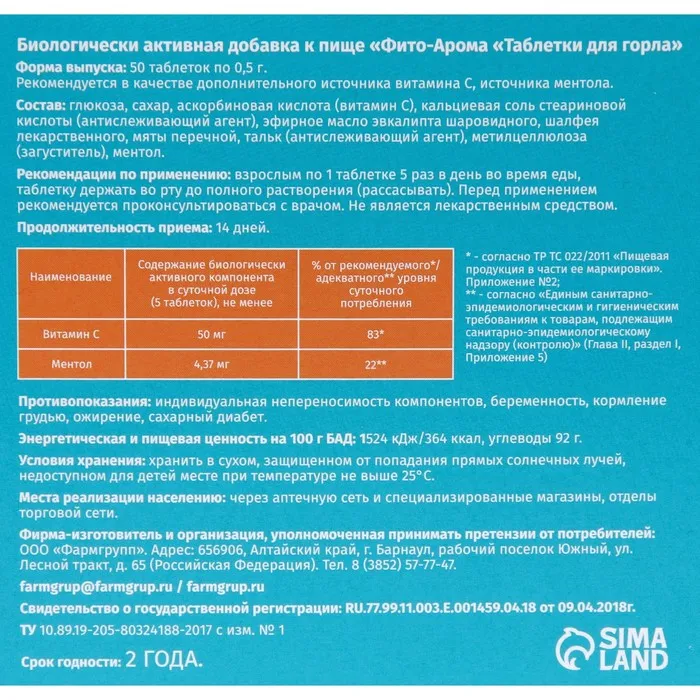 Таблетки для горла Фито-Арома Vitamuno содержат комплекс эфирных масел, которые способствуют снятию раздражению горла, устранению першения, придают дыханию длительную и ощутимую свежесть.