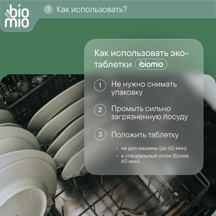 Таблетки для посудомоечной машины BioMio BIO-TABS MULTI с эвкалиптом - это идеальный выбор для тех, кто ценит чистоту, эффективность и безопасность.