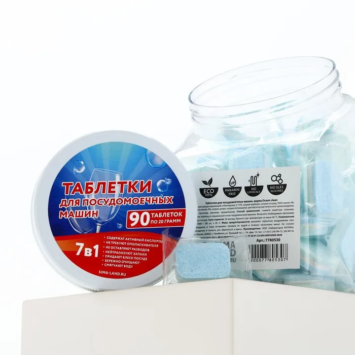 Таблетки для посудомоечных машин Mr. Блеск ффективно очищают и удаляют стойкие загрязнения, такие как остатки чая, кофе и жирные пятна, засохшие остатки пищи. - Смягчают воду;- Придаёт блеск стеклу и посуде без образования пятен;- Обеспечивает щадящую, но тщательную очистку;- Нейтрализует запахи;- Содержитактивныйкислород