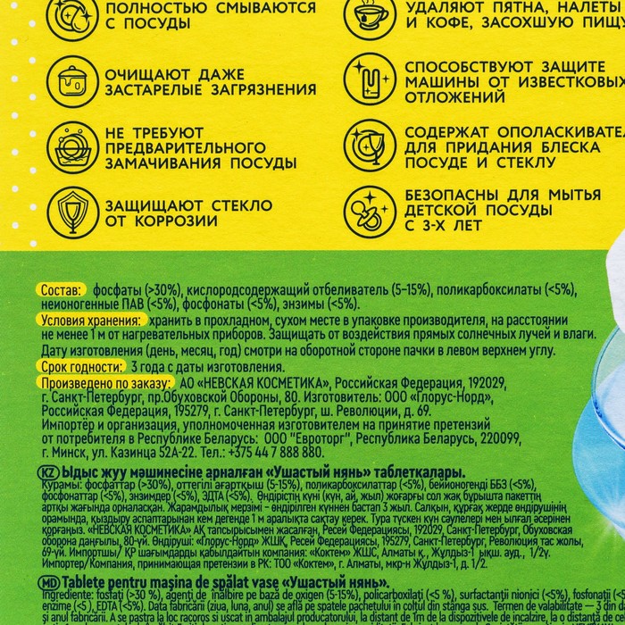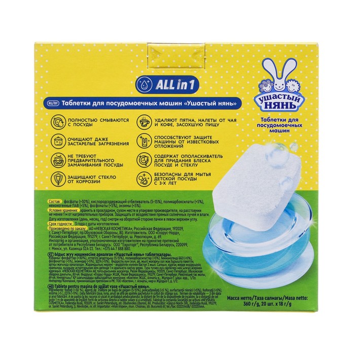 Таблетки для посудомоечных машин Ушастый нянь, 20 шт. — Характеристики