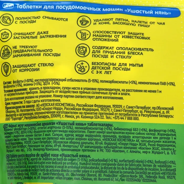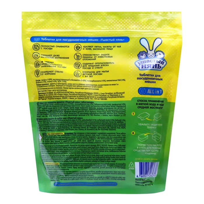 Таблетки для посудомоечных машин Ушастый нянь, 60 шт — Характеристики