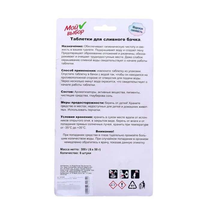 Таблетки для унитаза, 50 гр, 6 шт — Характеристики