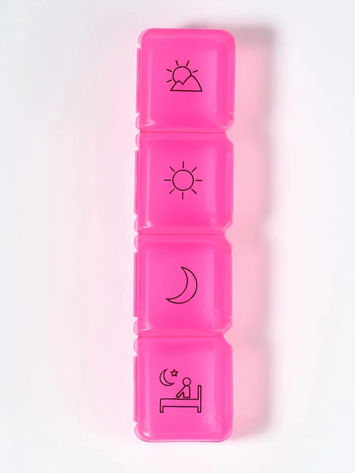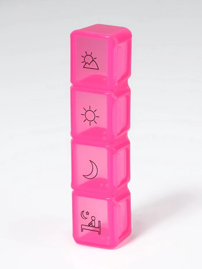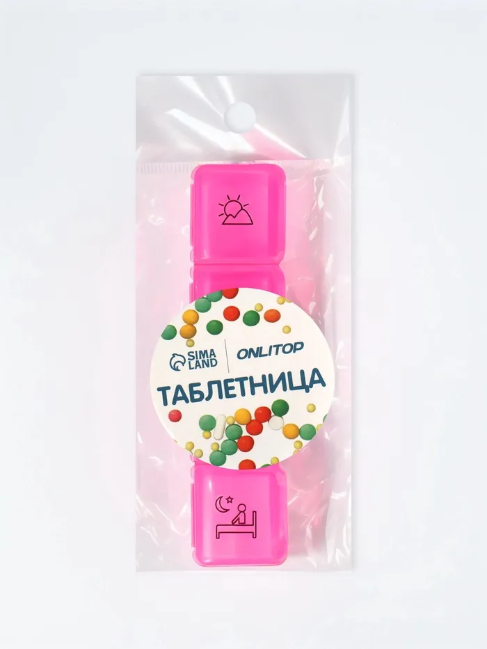 Таблетница, 10×2.3×2.3 см, 4 секции, розовая — Характеристики