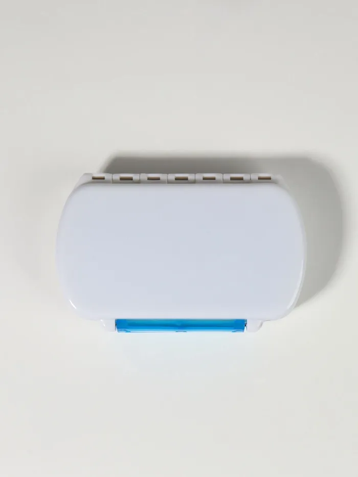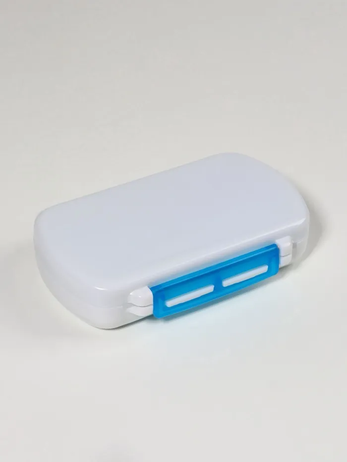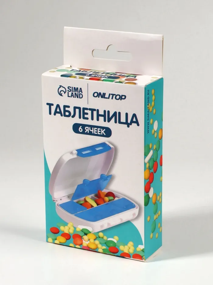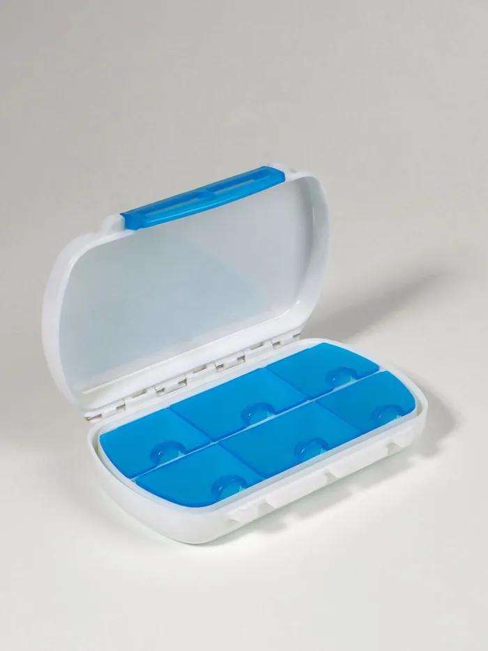 Таблетница, 12×7.5×2.8 см, 6 секций, белая, голубая — Характеристики