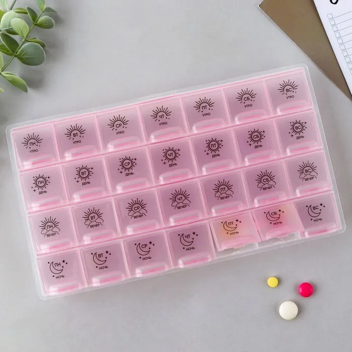 Таблетница, 6.5×6.5×2.5 см, 4 секции, цвет розовый — Характеристики