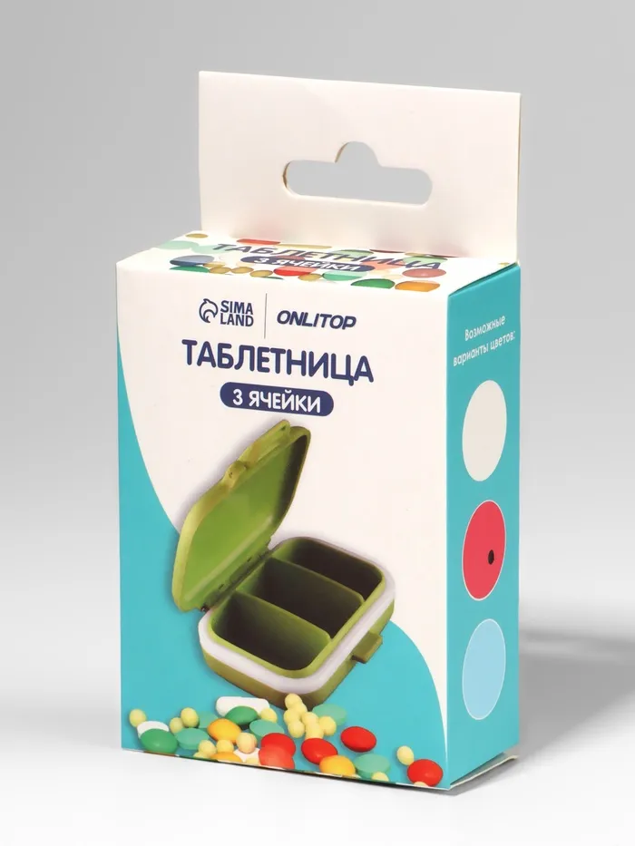 Таблетница, 8 × 6 × 3 см, 3 секции, цвет МИКС — Характеристики