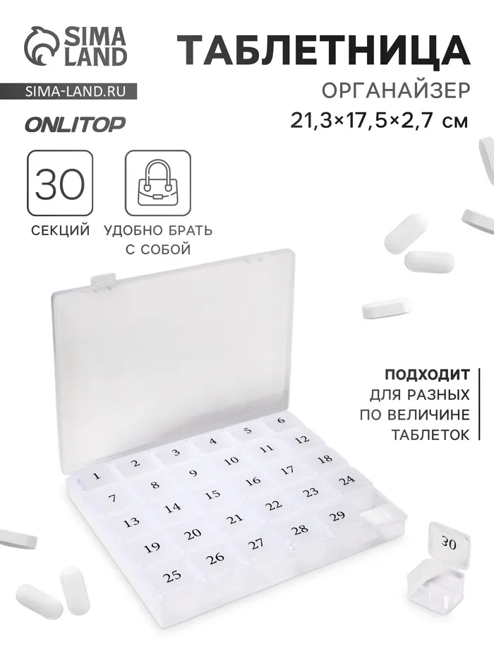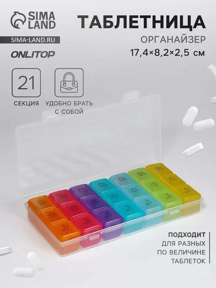 Теперь вы не забудете принять витамины или таблетки в течение дня: удобная и функциональная таблетница поможет распределить приём нужных препаратов по дням недели и вовремя вспомнить о них.