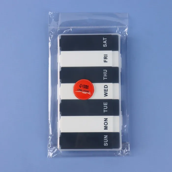 Таблетница разделена на секции, в каждую из которых Вы сможете поместить нужный набор препаратов. Распределите их по дням и возьмите с собой, а пластиковый корпус позаботится о сохранности таблеток.