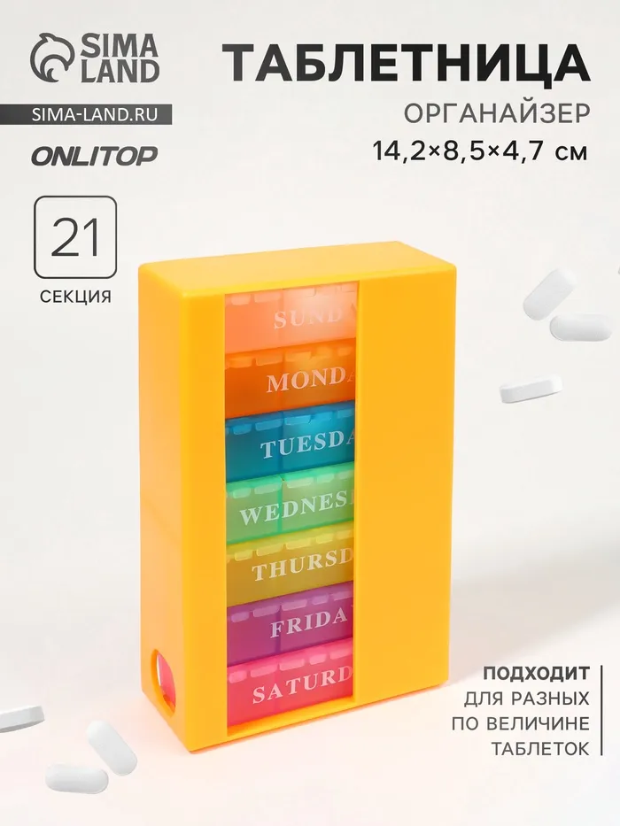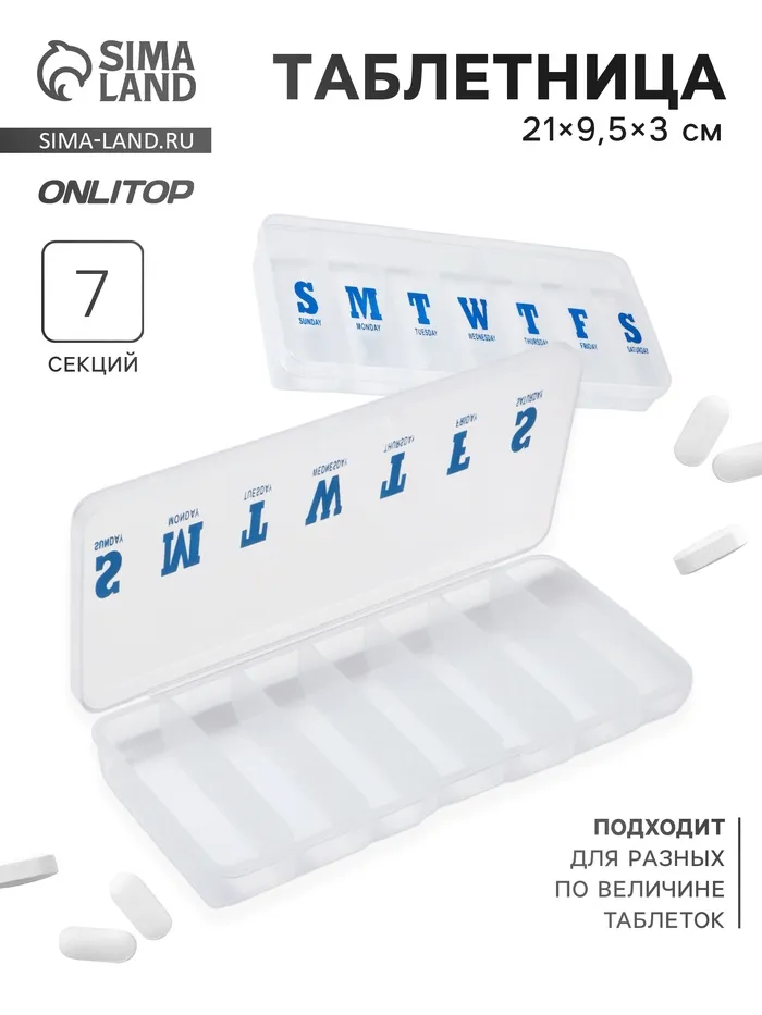 Размер таблетницы 21,5 × 6,5 × 2 см