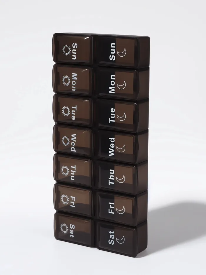 Есть ячейки для утреннего и вечернего приёма лекаств, что удобно при разделении приёма таблеток по времени.