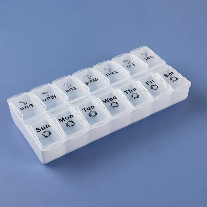 Таблетница - органайзер «Неделька», со съёмными ячейками, утро/вечер, 18.8×9×3 см, 7 контейнеров по 2 ячейки, белая — Характеристики