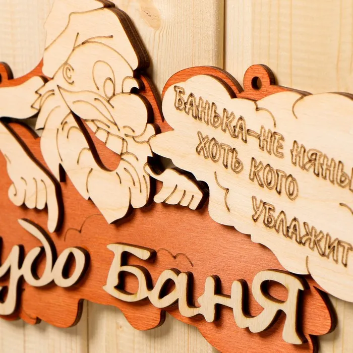 Таблички в бане информируют гостей о правилах посещения парной, помогают с навигацией и просто украшают интерьер. Такой аксессуар из дерева не выделяет вредных веществ, он безопасен и долговечен.