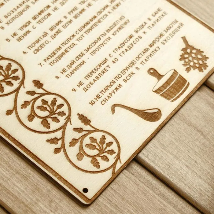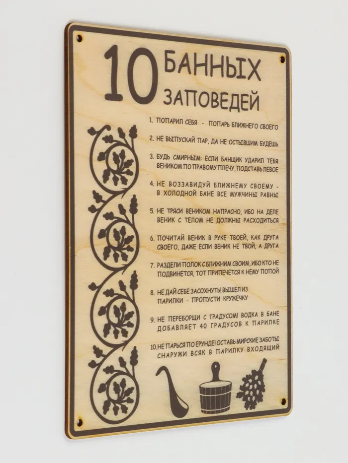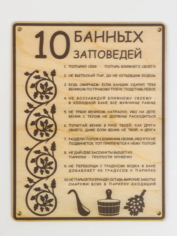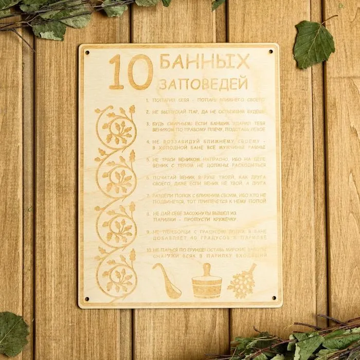 Табличка для бани 18.5×24 см "10 банных заповедей"