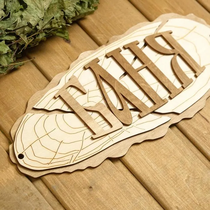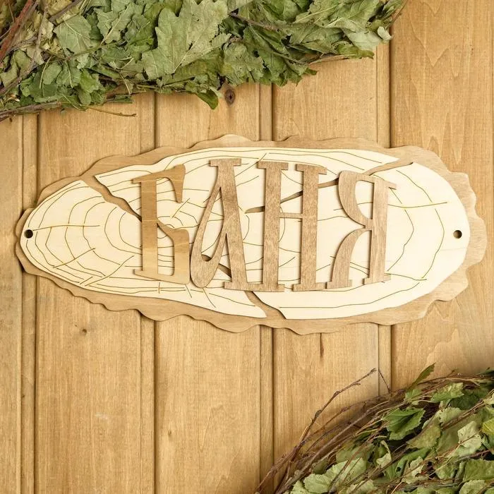 Таблички в бане информируют гостей о правилах посещения парной, помогают с навигацией и просто украшают интерьер. Такой аксессуар из дерева не выделяет вредных веществ, он безопасен и долговечен.