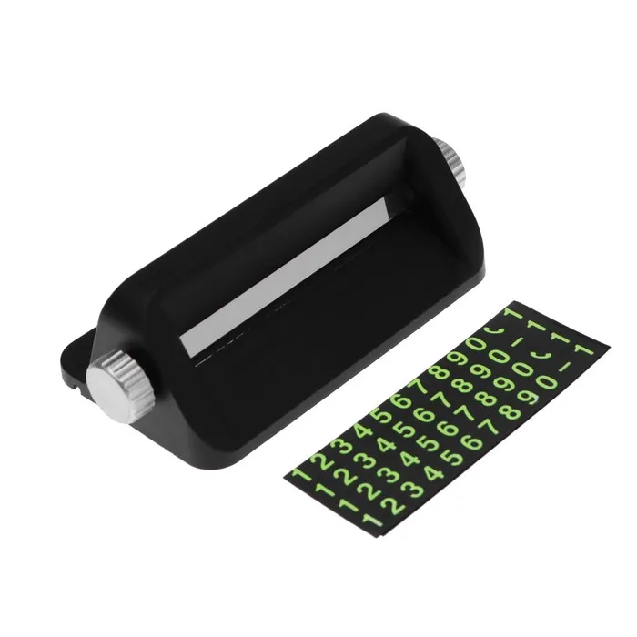 Парковочная табличка с номером телефона имеет подвижную конструкцию, что позволяет скрыть номер телефона легким движением одной руки. Набор имеет трафарет с цифрами от 0 до 9- это позволяет быстрого и легкого составить или изменить номера телефона, в случае если автомобилем пользуется не один водитель. В нижней части корпуса находится клейкая лента, которая позволяет надежно прикрепить табличку в нужном месте автомобиля. Современный дизайн таблички не будет выделяться из интерьера салона вашего автомобиля.