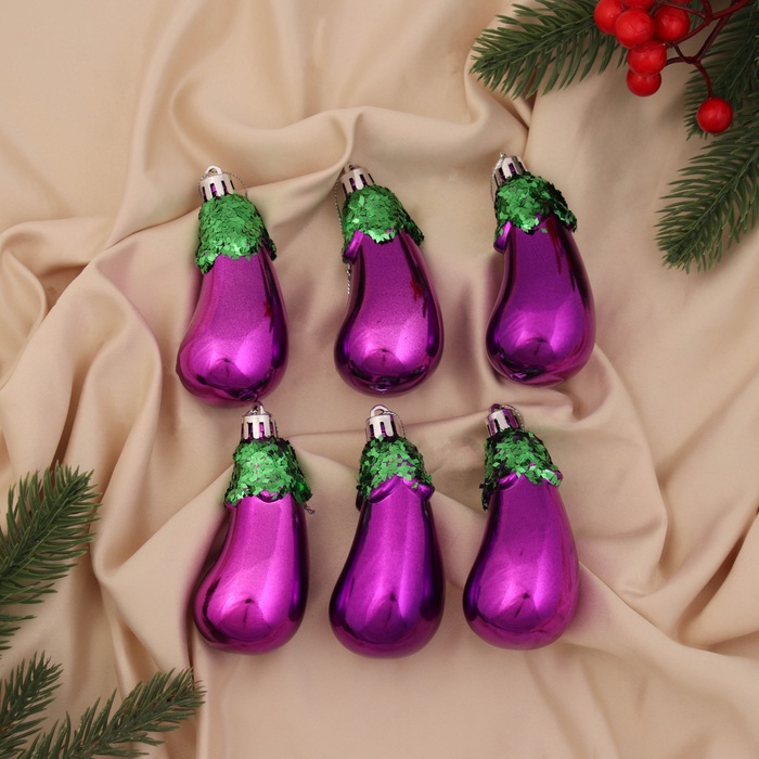 Ёлочные игрушки 6 шт. «Баклажан» 9.5×4 см, фиолетовый