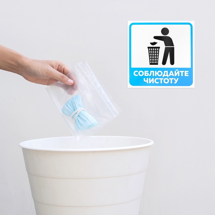 Табличка «НЕ МУСОРИТЬ» размером 200×200 мм с клейкой основой предназначена для предотвращения мусорных загрязнений в общественных и частных местах. Она эффективно напоминает людям о необходимости поддержания чистоты, обеспечивая соблюдение правил. Благодаря клейкой основе, её легко прикрепить к любой поверхности, будь то стены, урны или другие объекты.