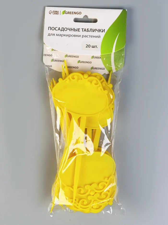 Таблички садовые для маркировки, фигурные, 15 см, набор 10 шт., пластик, жёлтые, Greengo — Характеристики