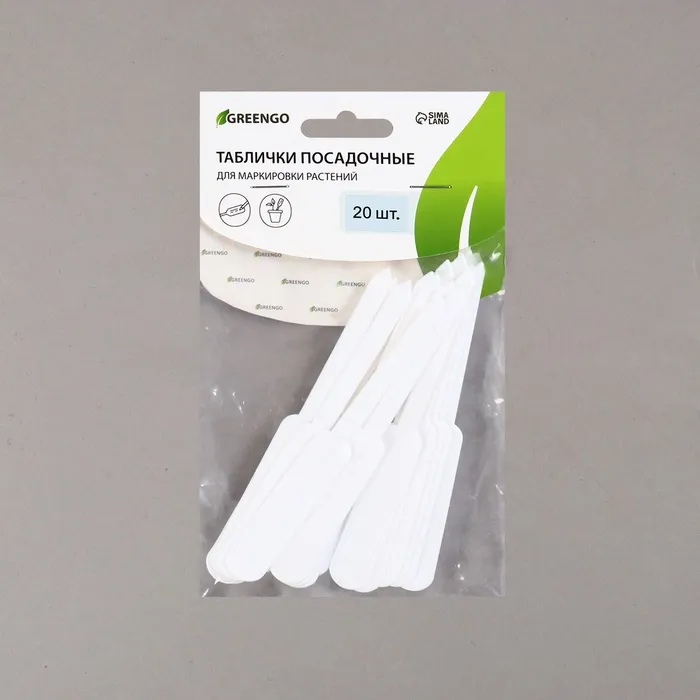 Таблички садовые, для маркировки растений, 12 см, набор 20 шт., пластик, белые, Greengo