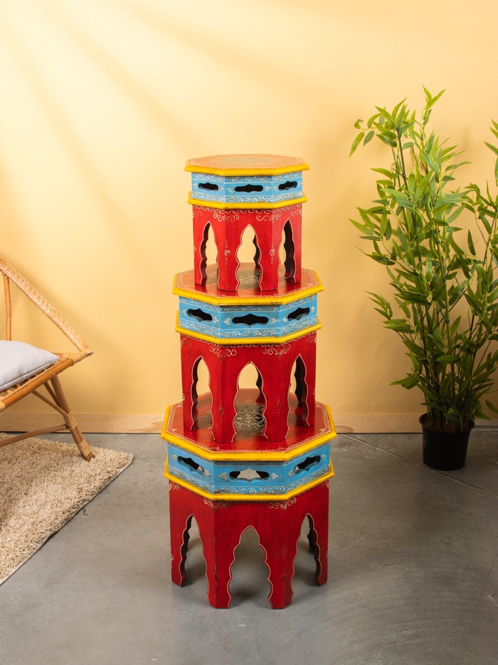 Табурет, 3 шт., 12×16×15.5 см, 24×20×22 см, 32.6×25×29 см, дерево — Характеристики