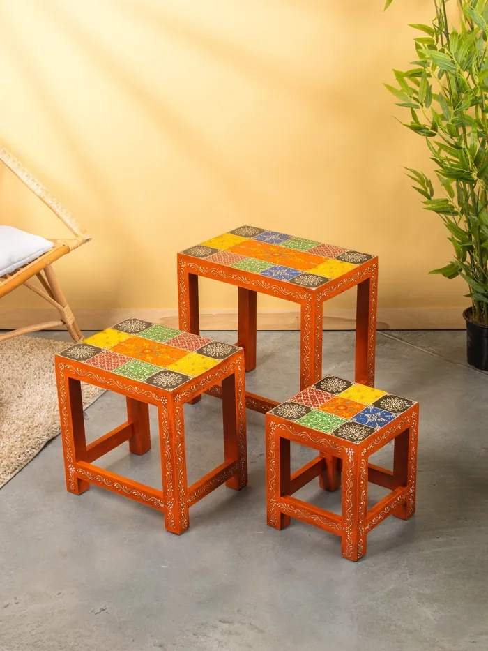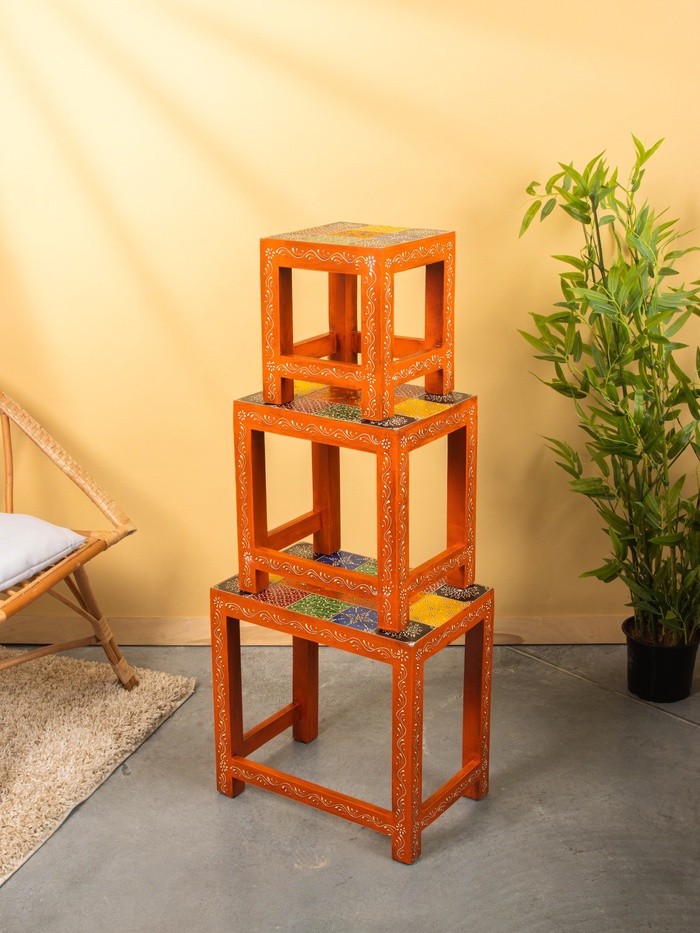 Табурет, 3 шт., 35×24.6×37 см, 48×30×45 см, 60×35×52 см, дерево — Характеристики